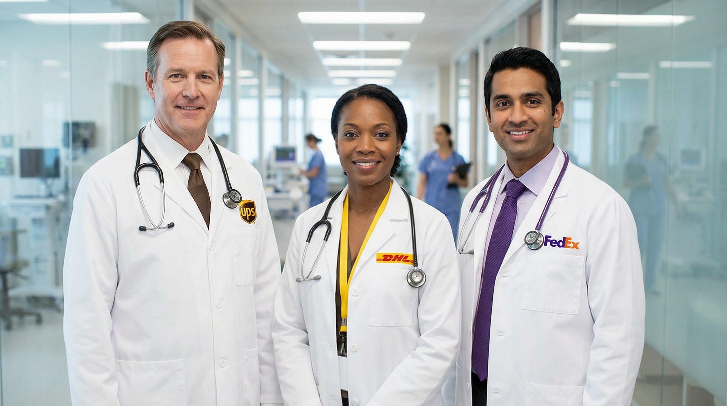 You know them as the Big 3: DHL, UPS, and FedEx. The kings of ecommerce logistics. Each nearing $100B in annual revenues, but all facing similar challenges. One of the clearest visions all three have given to the market is massive venture and investment into health care logistics.