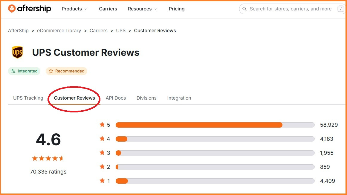 To see any reviews for yourself, visit https://www.aftership.com/carriers, find the carrier of choice, then click on the Customer Reviews tab as in the image above.