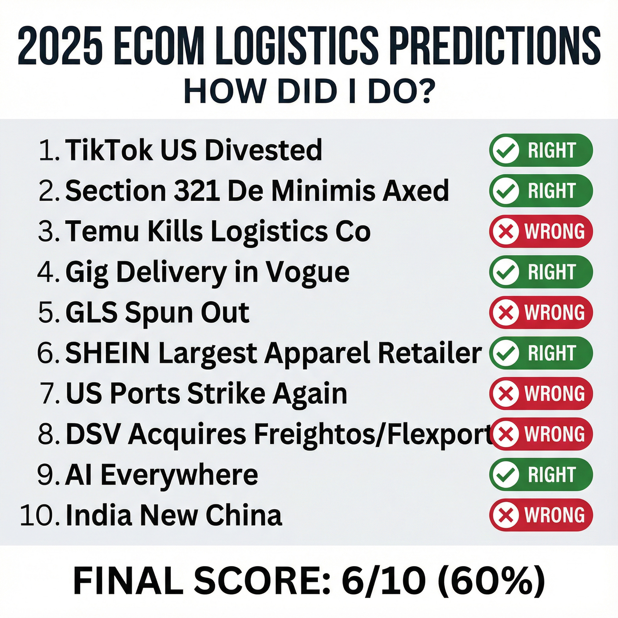 Last year I published my Ecom Logistics Predictions for 2025 on January 3 2025. Let’s see how I did.