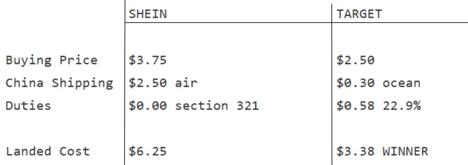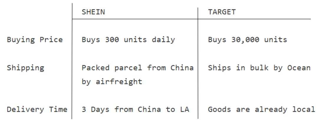 Give Shein and Temu an advantage that cannot be replicated by a US based retailer like Target.