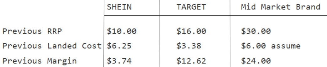 The irony in this argument is that companies like Shein and Temu have both higher product and logistics costs than their competitors. Let’s consider the cost structures of Shein vs Target for a moment.